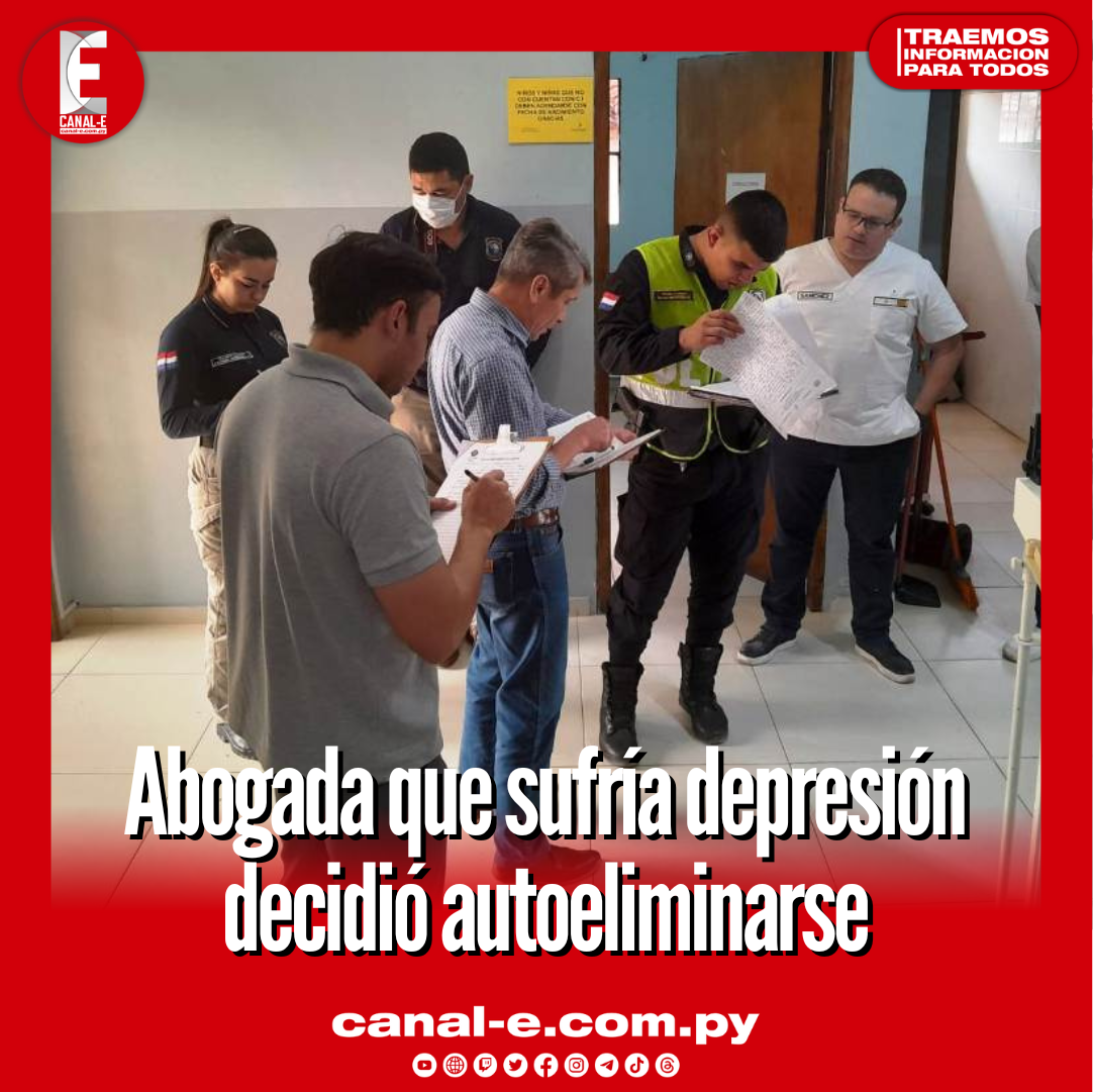 Una mujer de profesión abogada se autoeliminó en la noche del jueves en su habitación, la misma aparentemente afrontaba un cuadro de depresión. Ocurrió en la ciudad de Areguá.