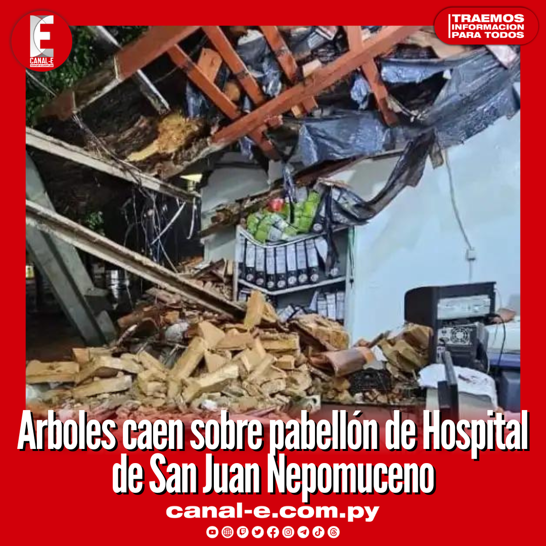 Dos árboles derrumbaron el techo y la pared de un pabellón del Hospital de San Juan Nepomuceno, durante el temporal que se registró en la zona del Departamento de Caazapá.