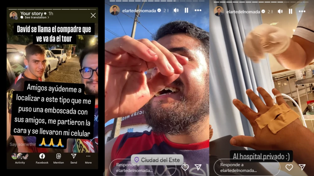 Con el tabique nasal roto y otra lesión en la mano, el influencer se dirigió al Hospital Regional de Ciudad del Este, donde, atendiendo a su publicación, le pidieron que esperara en la fila, por lo que optó por recurrir a un centro asistencial privado.