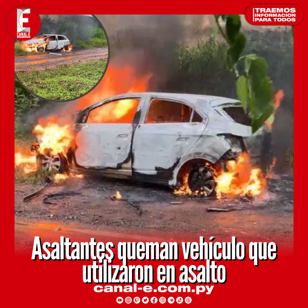 Un asalto que se registró en la mañana de este lunes en el interior de un casino de Ciudad de Este, dejó un vehículo de la marca Chevrolet modelo Ónix, totalmente quemado por parte de los delincuentes.