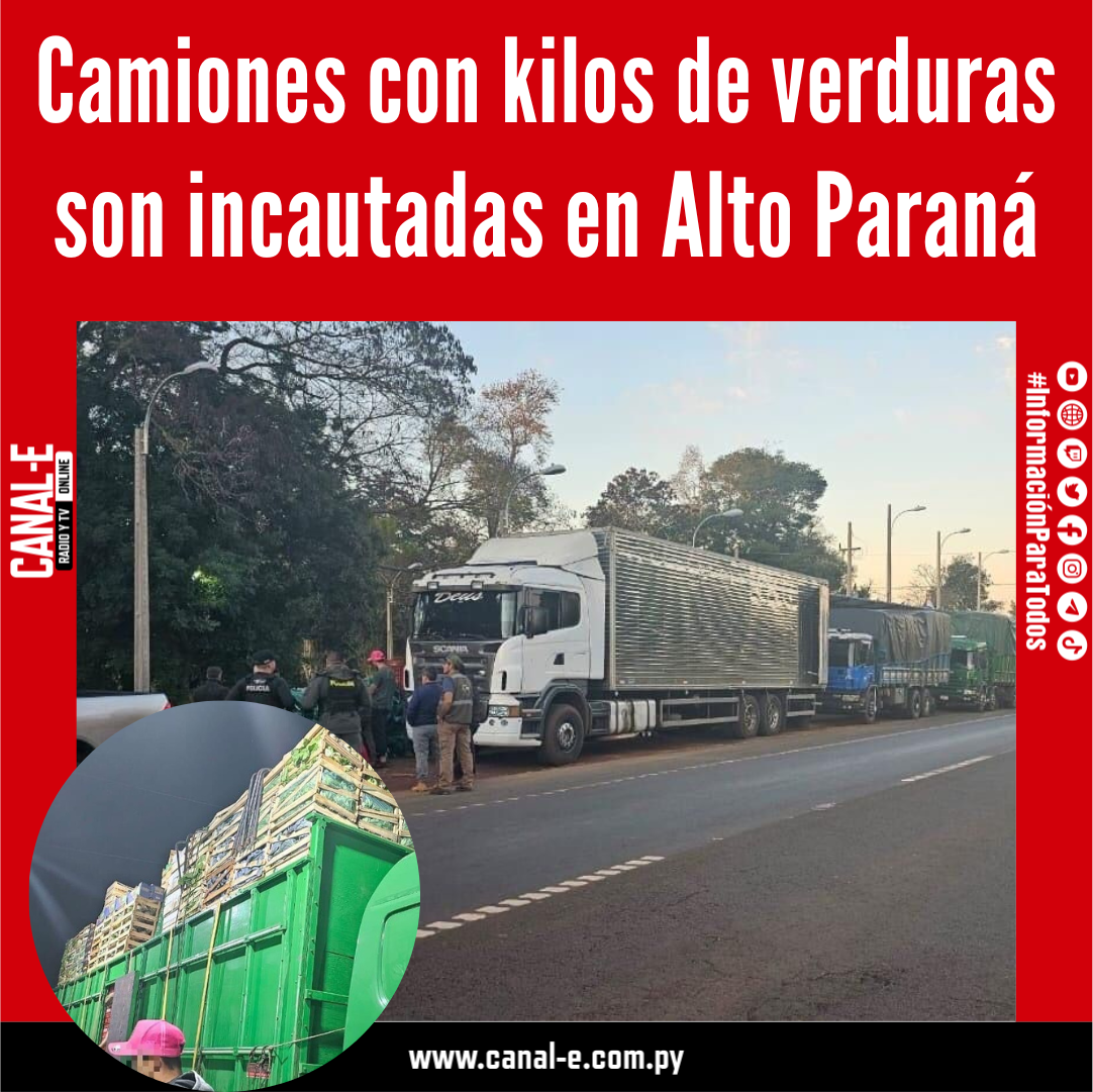 El procedimiento se llevó a cabo este lunes, a las 16:00, sobre la ruta PY02, en el kilómetro 60, a la altura de la ciudad de Yguazú, del Departamento de Alto Paraná. Tres tractocamiones fueron incautados en el lugar. Todos transportaban un total de 24.664 kilogramos de productos frutihortícolas.