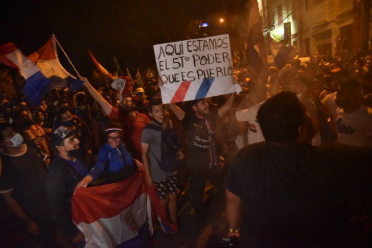Con esta concentración ante la sede del Partido Colorado, los manifestantes pretendían hacerle saber al presidente Mario Abdo Benítez que no se conformaban con los cambios anunciados en su Gabinete, sino que buscaban la renuncia de todo el Gobierno y poner fin a décadas de mandatos conservadores.