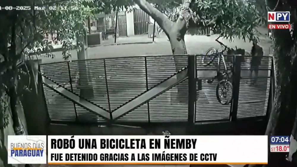 El sospechoso fue identificado como Alex David Penayo Bordón, de 28 años. Según el reporte policial, el sujeto ingresó a una vivienda tras escalar las rejas de una casa ubicada en el barrio Pa’i Ñu de Ñemby. Las imágenes del circuito cerrado de la propiedad muestran cómo el sospechoso observó el área para asegurarse de que no había testigos, luego levantó la bicicleta, la colocó sobre la reja y volvió a escalar para escapar.