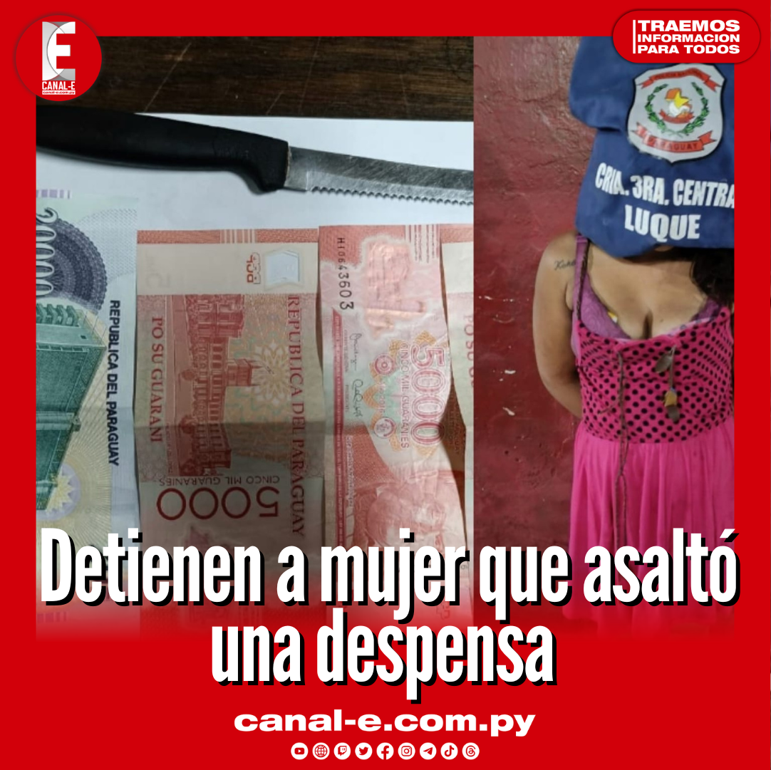 La detenida fue identificada como Patricia Jazmín Gómez, 18 años, sin domicilio fijo, con antecedentes por hechos de: Rrobo agravado, año 2023, proxenetismo, año 2019 y hurto especialmente grave, año 2022, de cuyo poder fue recuperado dinero en efectivo G.90.000, y un cuchillo de mesa, con mango de color negro que utilizó para el asalto.