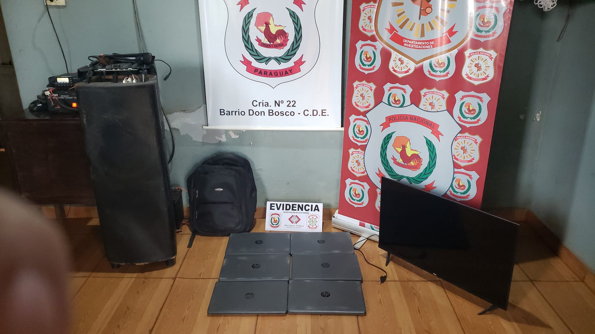 Agentes policiales de la Comisaría N° 22 Barrio Don Bosco de CDE, capturó a un menor de edad, de su poder se recuperó seis notebooks que fueron hurtadas del colegio San Antonio de Padua. Por otro lado también lograron recuperar de una vivienda un equipo de sonido y una TV Smart.