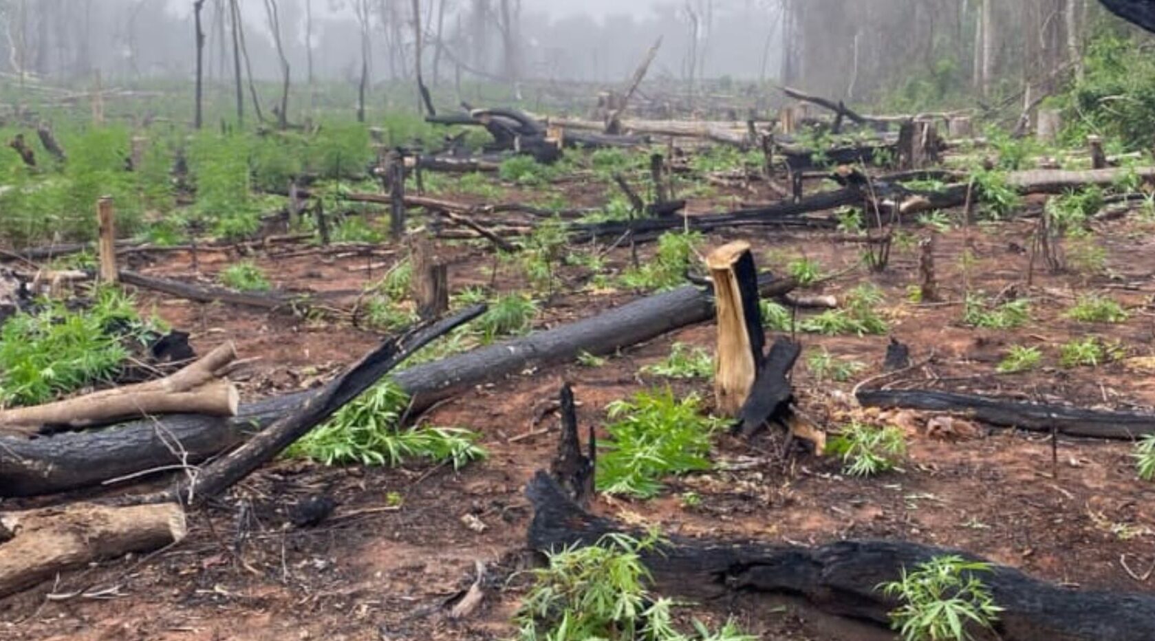 En otra parte del terreno se destruyeron otras 5 hectáreas aproximadamente de presunta marihuana en etapa de cosecha y de esa forma, en total se logró la destrucción de 9 hectáreas de supuesta marihuana.