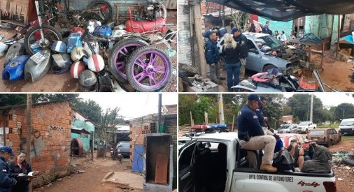 La fiscala Belinda Bobadilla encabezó los procedimientos, que fueron realizados por los agentes del Departamento de Automotores de la Policía Nacional. En el lugar fueron encontradas varias piezas de biciclos esparcidas por toda la propiedad.
