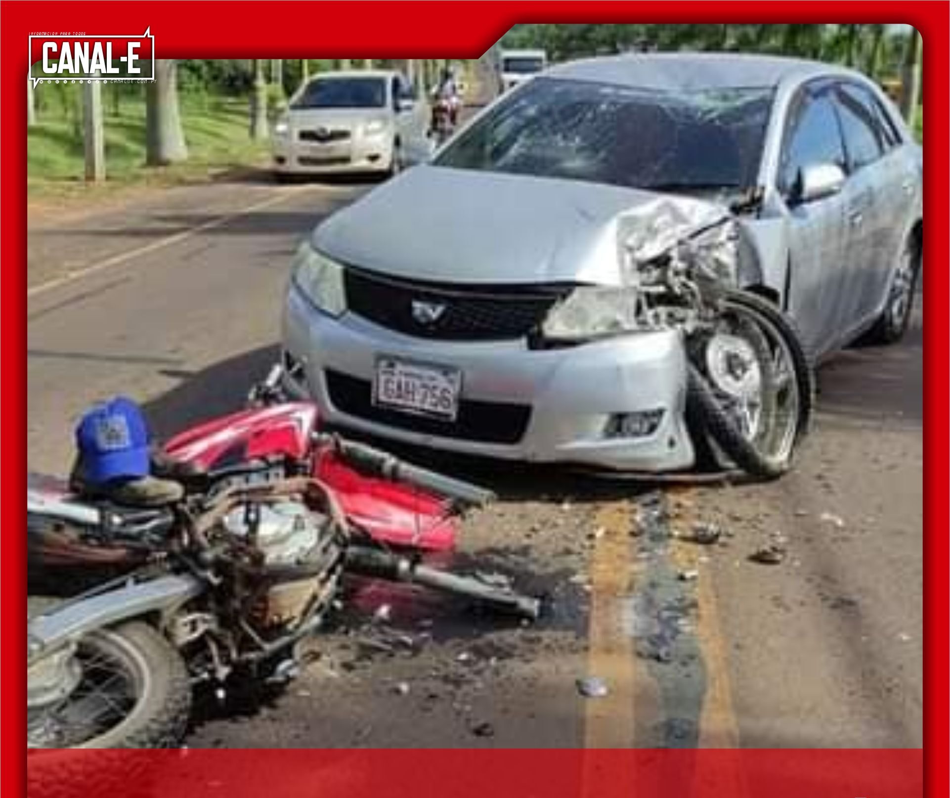 Los protagonistas son un automóvil Toyota Allion 2007, color gris, con chapa GAH756, guiado por Julio César Villalba Escobar de 41 años de edad (funcionario del Ministerio Público) y una moto Honda tipo Trail 2018 de color rojo, chapa 286AAAT, al mando de Rodrigo Fabián Román Kanikua de 31 años de edad quien se llevó la peor parte y fue socorrido hasta el Hospital Regional de Caazapá, dónde quedó en grave estado.