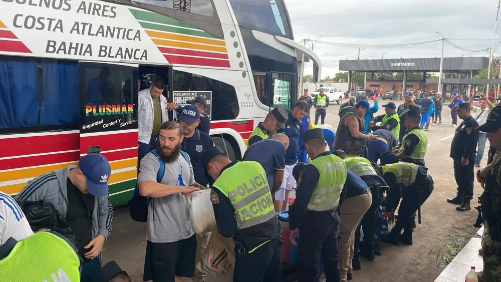 En el control migratorio, aduanero y policial, los hinchas quedaron retenidos y fueron inspeccionados, alguno de los fanáticos tenían entre sus milanesas marihuana, también la droga fue hallada en el interior del pan que traían para comer por el camino.