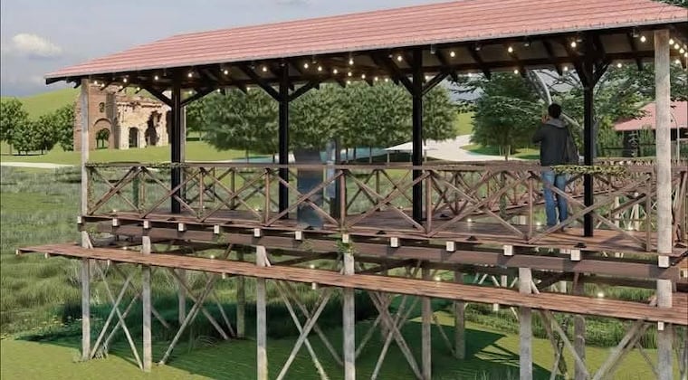 La intervención contempla una pasarela de acceso de 45 metros, un mirador de 5 por 5 metros y un voladizo perimetral de 80 centímetros. La estructura será construida con materiales locales como maderas duras tratadas —quebracho colorado, lapacho, yvyraró y curupay— además de hormigón armado, con el fin de garantizar durabilidad. También contará con iluminación LED y solar para promover la eficiencia energética y reducir el impacto ambiental.