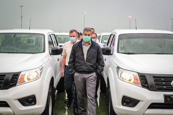 Mario Abdo Benítez participó este jueves de la presentación y verificación de 53 vehículos adquiridos por el Gobierno a través del Ministerio de Agricultura y Ganadería que estarán destinados a trabajos de campo. Esto se realizó en el Palacio de López, donde el jefe de Estado habló a la prensa y evaluó el año 2020.
