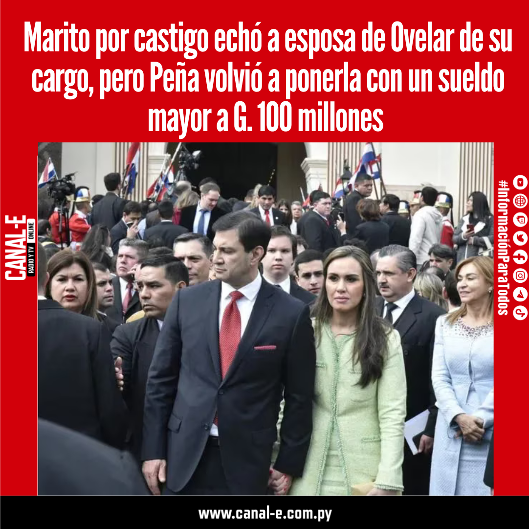 La esposa del presidente del Congreso Nacional, Silvio Beto Ovelar, Iris Magnolia Mendoza, fue reacomodada nuevamente por Santiago Peña en Itaipú, con un salario mayor a los G. 100 millones.