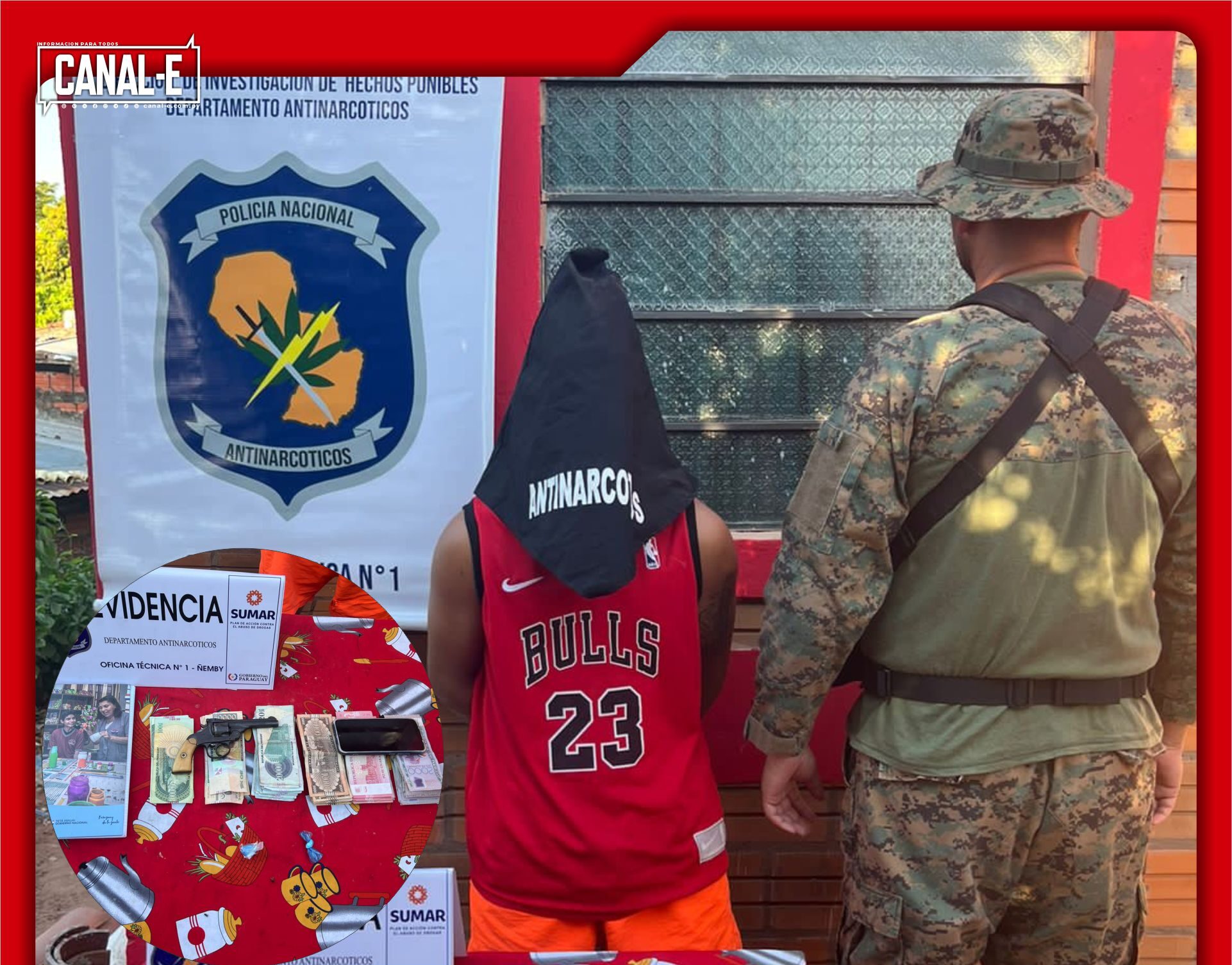 En el inmueble allanado fue detenido un menor de edad y se incautó supuesta cocaína con un peso de 0,7 gramos, distribuidas en dos dosis, dinero en efectivo en diversas denominaciones, totalizando la suma de Gs 1.679.000, un cuaderno con varias anotaciones, un arma de fuego tipo revólver calibre 32 mm, un aparato celular, además de una motocicleta de la marca Leopard, modelo 2015 con carcasa Kenton, presumiblemente clonado. El detenido fue puesto a disposición del juzgado.