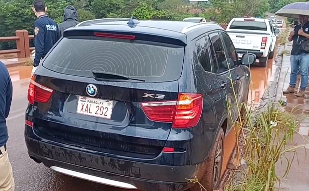 La camioneta de la marca BMW modelo X3, fue hallada abandonada frente al puente que pasa por el río Monday.