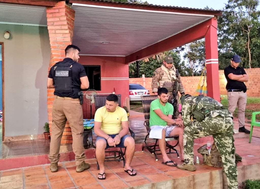 Las detenciones fueron esta mañana durante el allanamiento a una vivienda en la Colonia 8 de Diciembre de Yby Pytã, Canindeyú. Del poder de los mismos incautamos dinero en efectivo, un vehículo, celulares y documentos. Las tareas fueron coordinadas con los fiscales Guillermo Sanabria y Néstor Narváez.