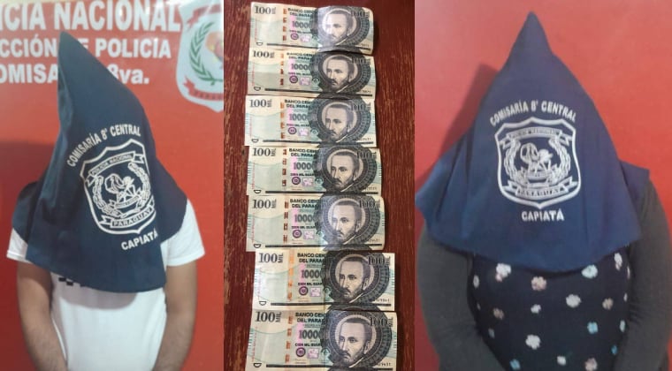 La Policía Nacional concretó la detención de una pareja que intentó adquirir prendas de vestir en una feria en la ciudad de Capiatá, utilizando para ello billetes falsos. Ambos fueron imputados.