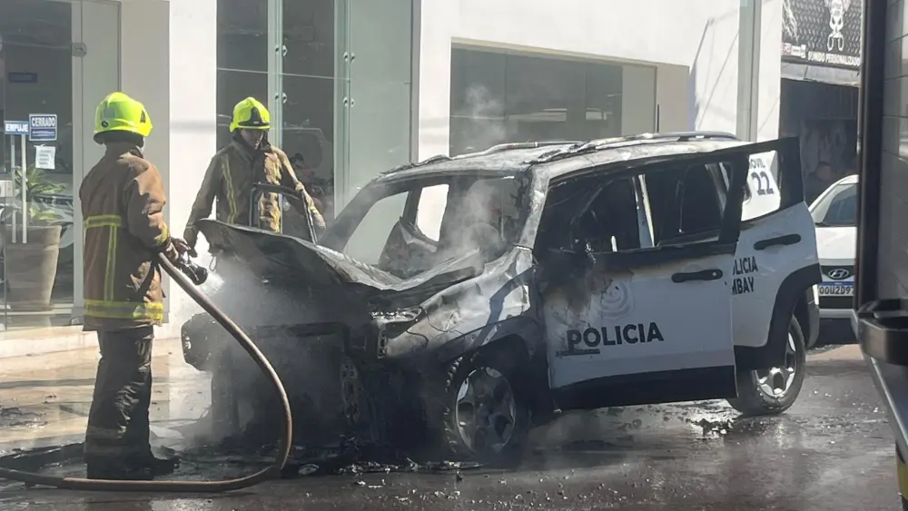 Los uniformados lograron abandonar la camioneta Jeep Renegade antes de que el fuego consuma la totalidad del vehículo.