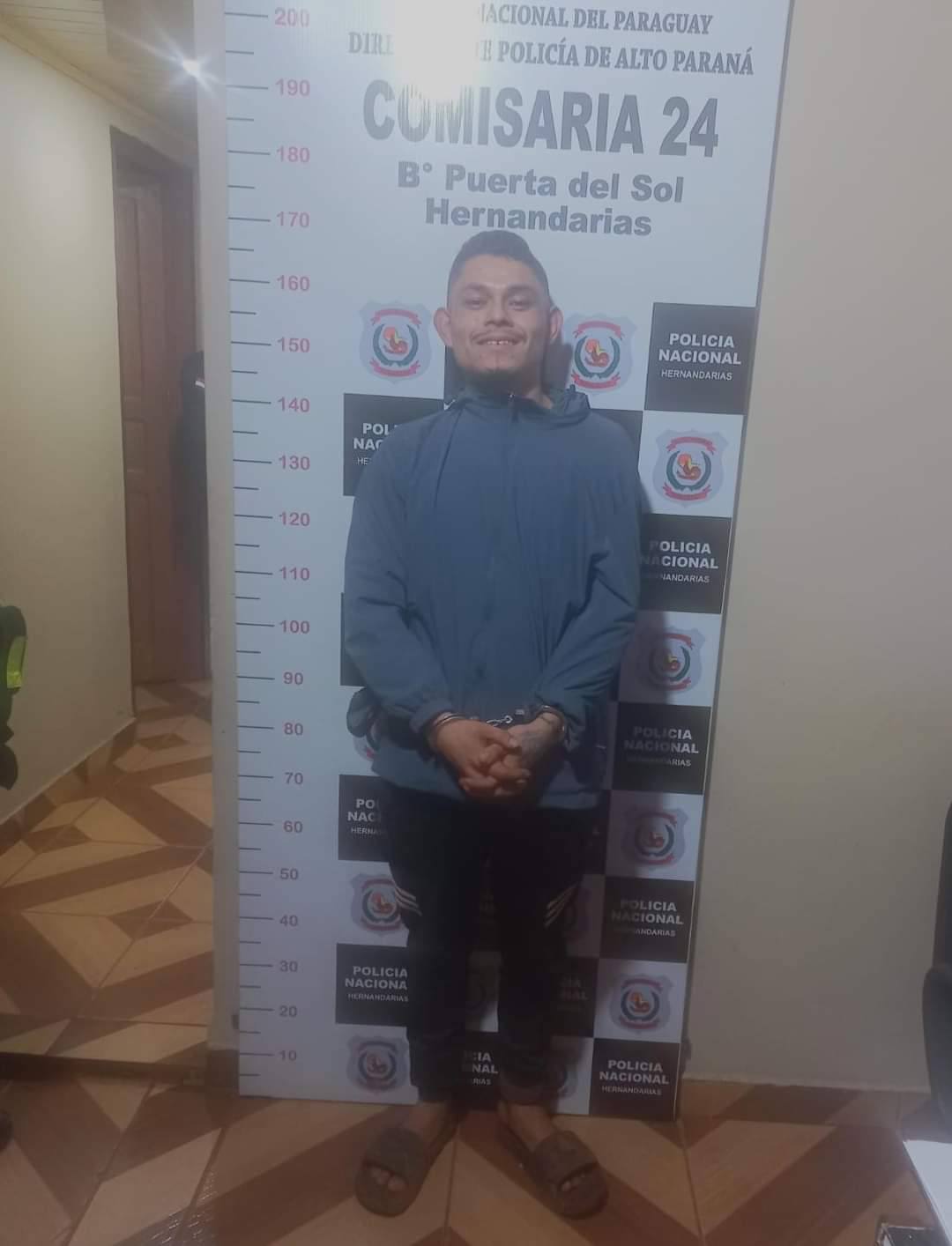 Miguel Ángel Quintana Pela de 25 años, quedó detenido luego de quemar su vivienda en el asentamiento Ka’avotory de Hernandarias.