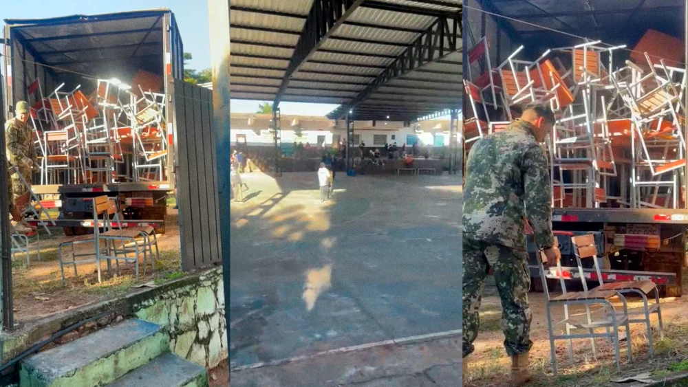 Se trata de unas 1.200 sillas y mesas de fabricación nacional, que fueron retiradas este miércoles por militares, en el marco del reemplazo de mobiliario llevado a cabo por el Gobierno Nacional, que se encuentra distribuyendo los mediáticos pupitres chinos.