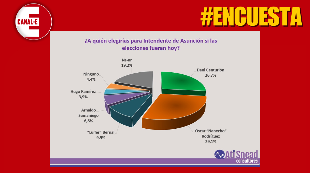 En un sondeo realizado por la consultora Ati Snead, basado en más de 1.000 encuestas, el intendente de Asunción, Óscar «Nenecho» Rodríguez, mantiene su liderazgo en la capital y una amplia ventaja sobre su principal rival, el actual diputado Dani Centurión.