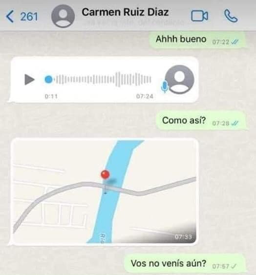 Carmen en la mañana del jueves, envió a su hermana Karen un audio (en donde se escuchan a los niños gritando) y la ubicación en donde marcaba el río Monday.