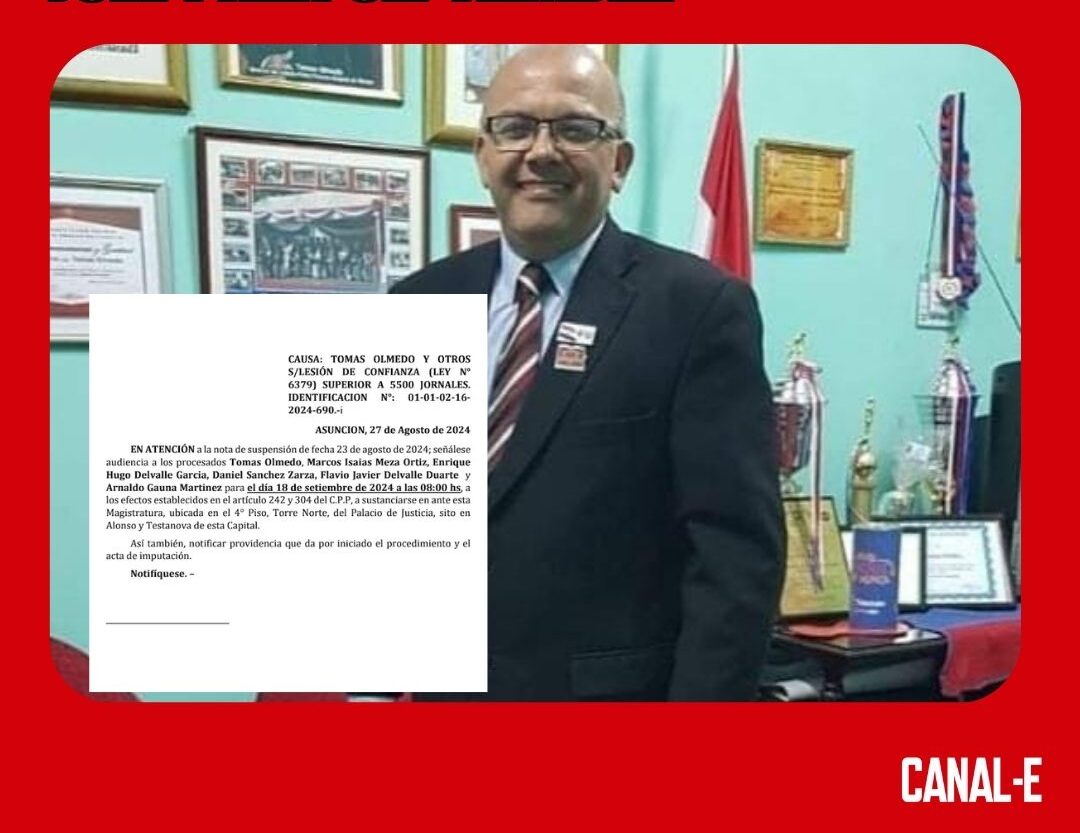 El intendente de Ñemby, Tomás Olmedo, fue convocado por el juez de garantías, Rodrigo Estigarribia, para su imposición de medidas. Reiteramos que la fiscal Milena Basualdo, reculó y eliminó la medida cautelar en donde pedía que el jefe comunal no se acerque al municipio.