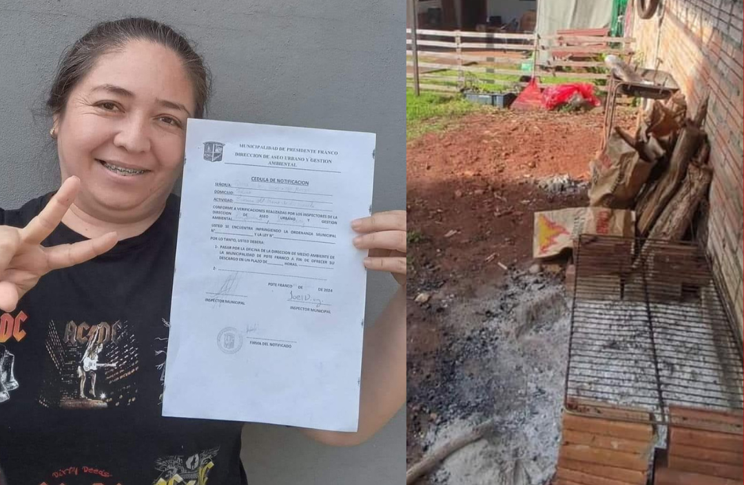 Lovera recibió la notificación de la Dirección de Aseo Urbano de la Municipalidad de Presidente Franco por “Emisión de humo de la parrilla”.