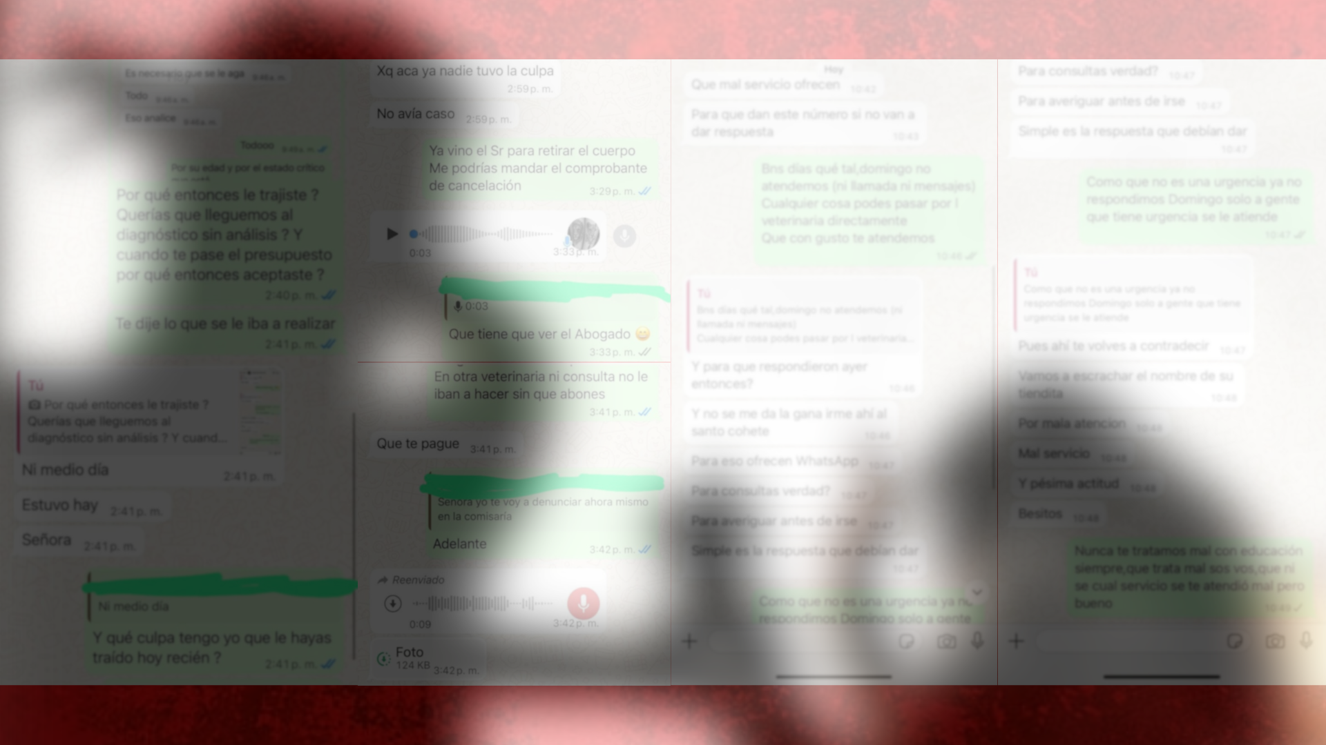 En otros mensajes, se critica el costo de las castraciones, se acusa a los veterinarios de trabajar “solo para los ricos” y se responde con furia cuando se les informa que no se atienden urgencias los domingos.