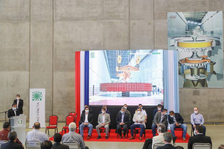 El acto de puesta en marcha de las unidades generadoras de energía 01 y 03 se celebró este miércoles dentro de la sala de máquinas de Yacyretá y contó con la presencia de autoridades de los países copropietarios de la hidroeléctrica, Paraguay y Argentina.